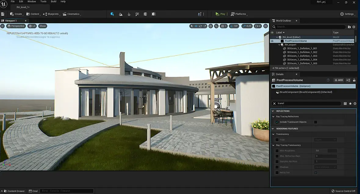 а в аутпот логе не прописывал r.RayTracing.Translucency 1 ? просто если прописывал , то пост процесс не будет влиять на транслюсенц ,попробуй напиши r.RayTracing.Translucency 0