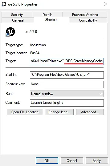 C:\Program Files\Epic Games\UE_5.7\Engine\Binaries\Win64>UnrealEditor.exe -DDC-ForceMemoryCache