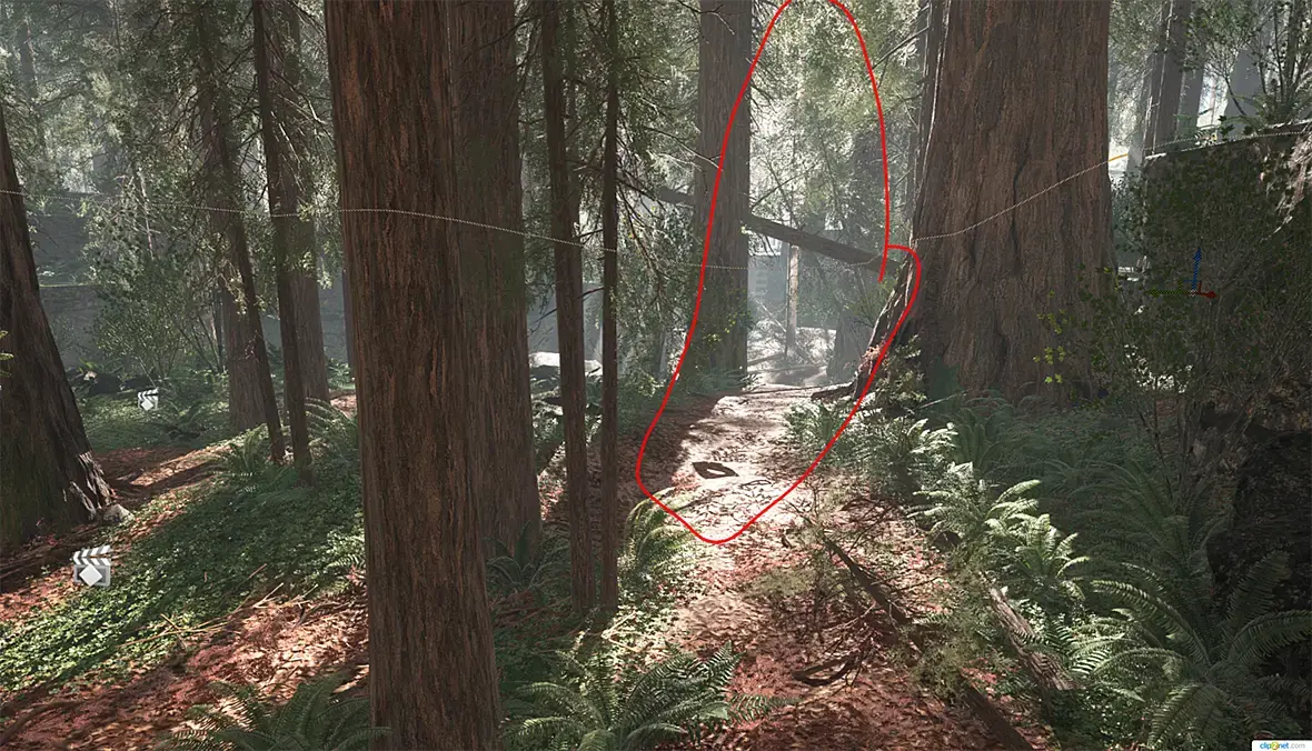 И вроде бы и даааааа, но потом смотришь детально, не пролетая это на скорости, которые в ролике и начинается, на деревьях странная зелень. Тени если дерево не паревено в наните то на уровне лода с плейнами опасити тень пропадает вовсе, вся зеленка покрывается неправильными тенями потому, что собственно не отрабатывает WPO.