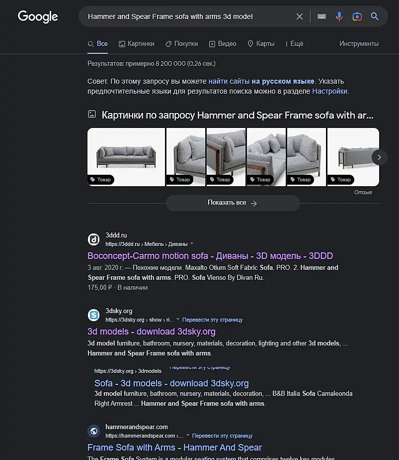 чтобы убедиться в правильности или неправильности своих умозаключений я вас попрошу народ - пробейте свои модели в поисковике 1-2 из топа своих продаж и 1-2 которую, вы вроде думали что пойдет как "пирожки на вокзале" а продаж кот наплакал. и если у большинства так - то можете считать что мы нашли корень проблемы. если это подтвердится нужно думать как сделать так чтобы в поиске модели выдавались моментально. ведь вписывая "poliform + любое название модели" в поиск - первое что вы увидите это ссылку на их сайт. нужно сделать так же чтоб работало с "хххх+3d"