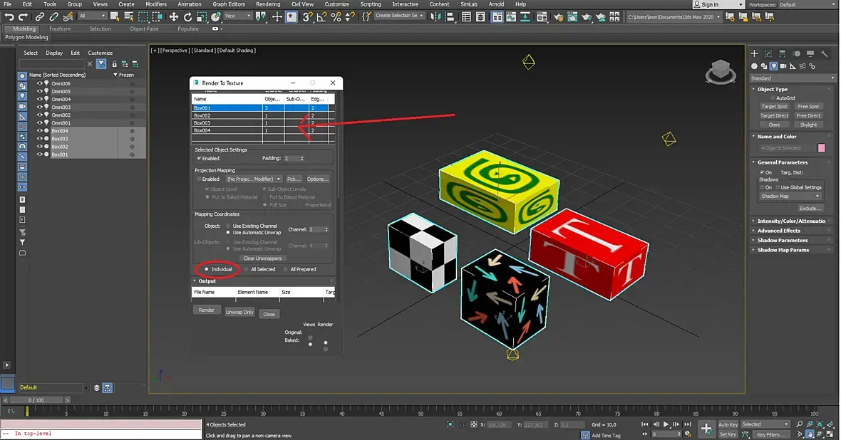 3DCoat, Substance, Max при запекание текстур создают 4 текстуры (если на сцене 4 объекта).