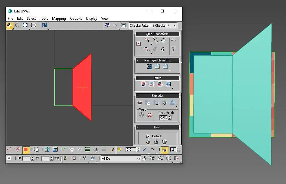 Но стоит наложить сюда планарный маппинг и объекты сойдутся с погрешностью до точности вычислений 3дмакса.