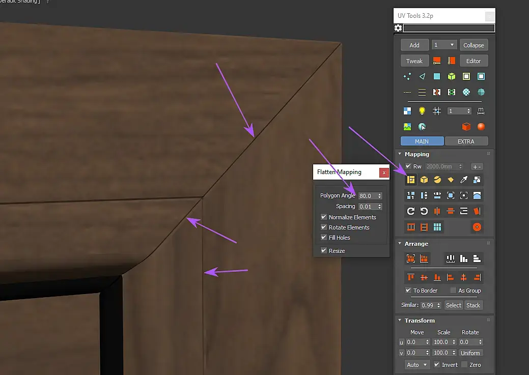 Есть к примеру оконная рама. Почему при выделенных полигонах в UV Tools меняется направление всего элемента? а не только выделенного участка. Если объект изначально разбит на элементы такой проблемы нет, но если это единый меш то получается такая ерунда. Что при развороте, что при направлении вдоль еджей..