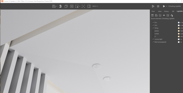 Фальшпотолка вообще не видно во вьюпорте, споты в воздухе, хотя на рендере все ок