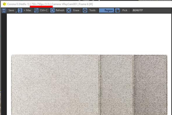 Вопрос снят. Просто надо было разрешение интерактива и рендера делать одинаковое. Тогда картинка по гамме смотрится одинаково. У меня окно основного рендера было разрешением больше и рисунок ковра из-за того что ли рябит, кажется темнее.