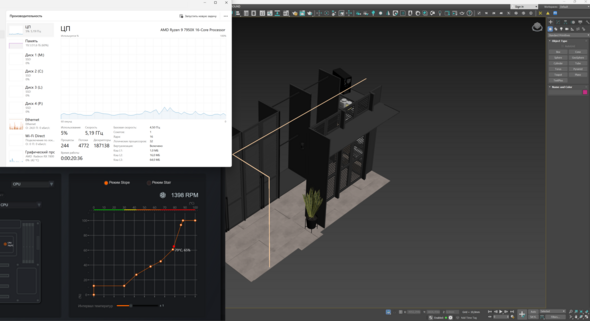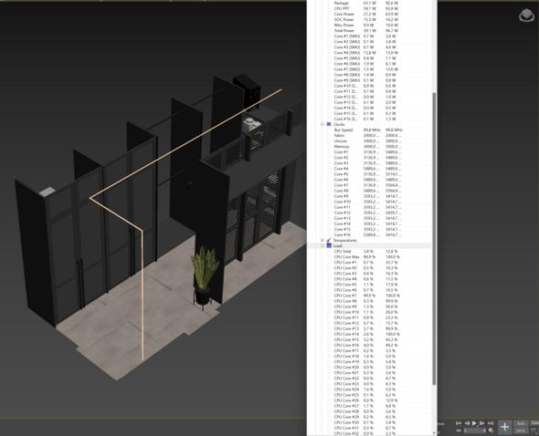 В других сценах, в т.ч. более тяжелых, проблемы нет. Удаление отдельных слоёв не помогает - только сразу нескольких, снижающих число полигонов в сцене с 10 млн. до 6 млн. При том эти слои уже были в файле давно и не доставляли проблем (один слой - одной помещение). Удаление слоя с наиболее новым помещением, во время создания которого возникла проблема, не помогает. Примечательно, что если и помогает удаление нескольких слоёв, то срабатывает это только после сохранения копии и перезапуска программы. Даже если я зачищаю сцену в ноль, процессор продолжает греться, если я её не перезагружаю.