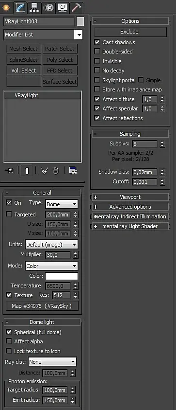 *Настройки рендера не менял, изменился только способ освещения! v-ray dome light мне нужен для v-ray select, так как насколько я понимаю само окружение туда нельзя добавить.