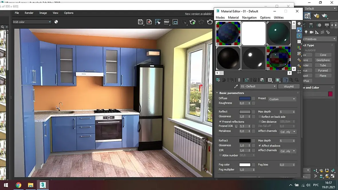 Подскажите как добиться глубокого глянца на фасаде кухни? обычный цвет допустим кремовый. вирей 5. какие галочки убирать или ставить менять ли значения IOR ?