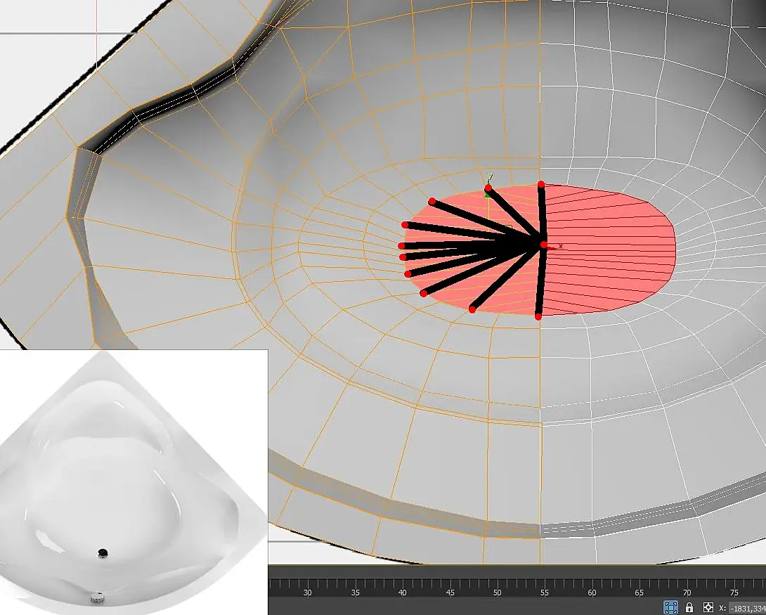 Удалить то, что на вашем скрине красным. Будет дыра. В режиме бордера делаем лупы инструментом маштабирования зажимая шифт. За шаг до финального, делаем контрольный луп для дырки. После кап и нарезка еджей по вертексам. Либо пользуете если есть скрипты, плагины для замыкания подобного.