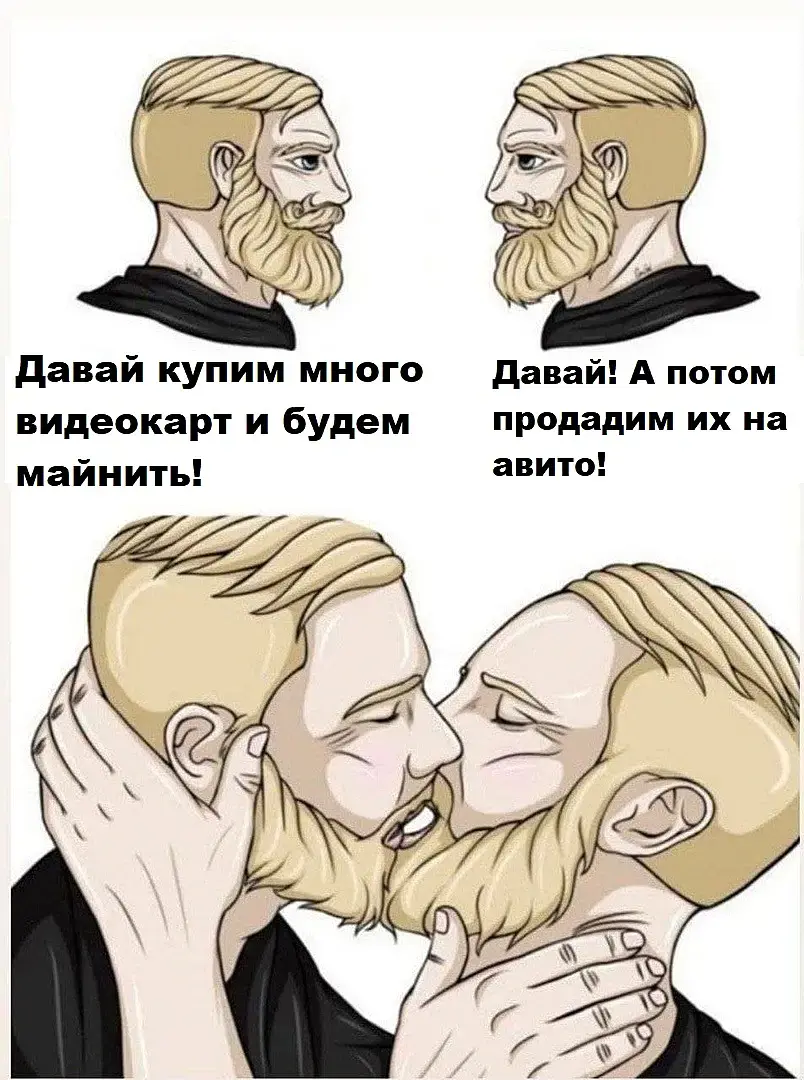 Год назад коллега дербанил майнинг ферму, продал начальнику gtx 1060 3gb за 7к, у него еще пять штук таких было. Так вот я в итоге зажал и не купил, думал нафиг надо все равно на проце рендерю, теперь на цены смотрю а они по 25-30к продаются. Совсем народ с ума сошел. Как думаете сколько этот кобздец продлится? Видимо придется еще долго на своей древнегреческой 560-ой сидеть