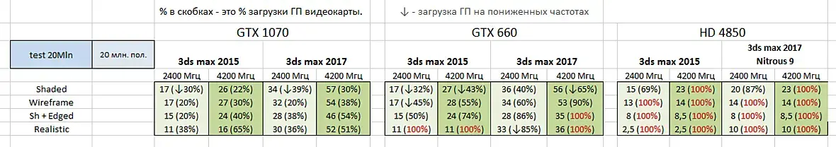 про "test 20Mln". Из таблицы видно хорошо, что "лишь низкая частота цп позволила HD 4850 быть загруженной не на максимум в 2015 и 2017 максах в режиме Shade."