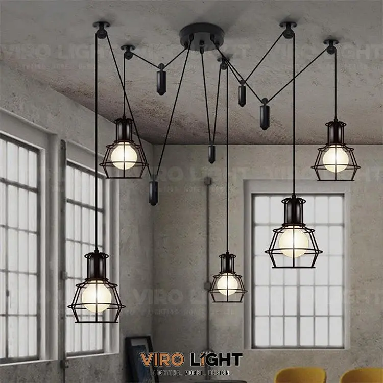 Люстры-паук в лофт интерьере.Свое название получили из-за специфики конструкции: классические рожки заменены на «паучьи лапы», представленные жесткими ножками из металла, мягкими проводами или шнурами. Доступны люстры с возможностью регулировки длины ножек или светового потока, что позволяет быстро преображать осветительный прибор без дополнительных затрат. Прекрасно выглядят в помещениях, оформленных в стиле лофт, ар-деко, минимализм и других современных вариациях. Наделяют интерьер легкой небрежностью, за счет которой сочетаются с любыми оттеночными комбинациями и вариантами меблировки. Минимальное количество лам составляет 6, максимальное — 12-16, поэтому легко подобрать решение для помещения любой площади и конфигурации.