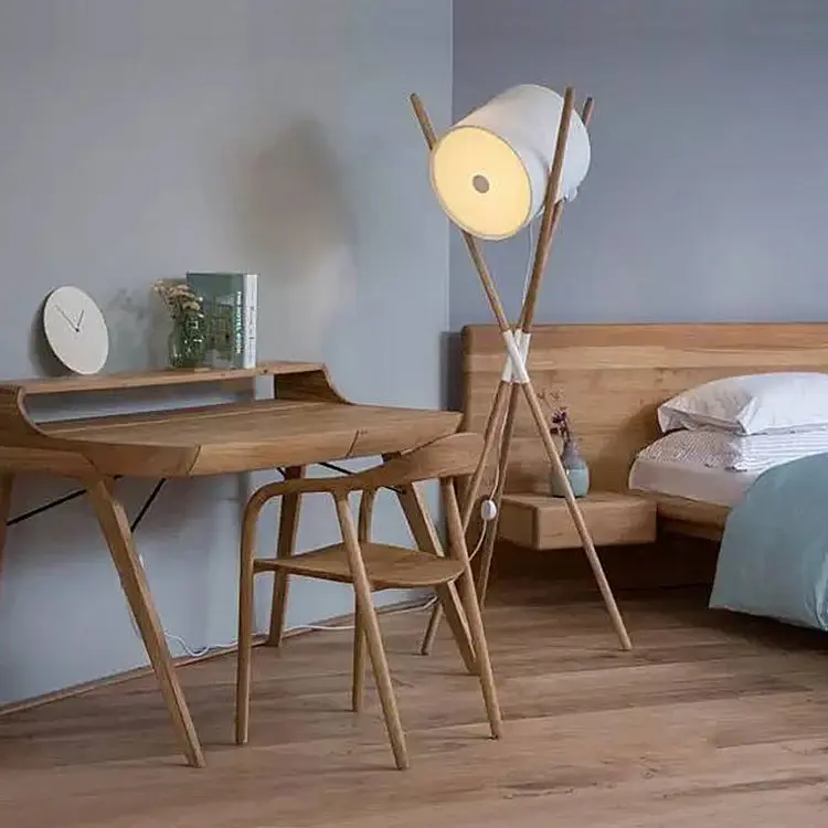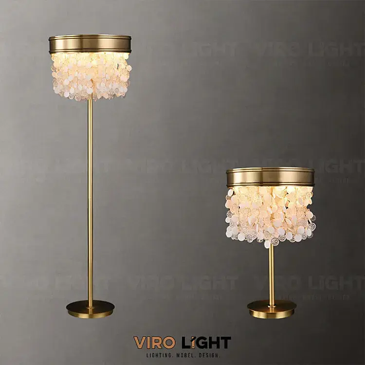 Осветительный прибор в классическом дизайне представляет собой напольную лампу на высокой ноге из дерева, пластика или металла, увенчанную абажуром правильной формы из бумаги, ткани, стекла или пластмассы на каркасе. Из «вольностей» - есть модели с небольшим столиком, на котором поместится чашка кофе или книга.