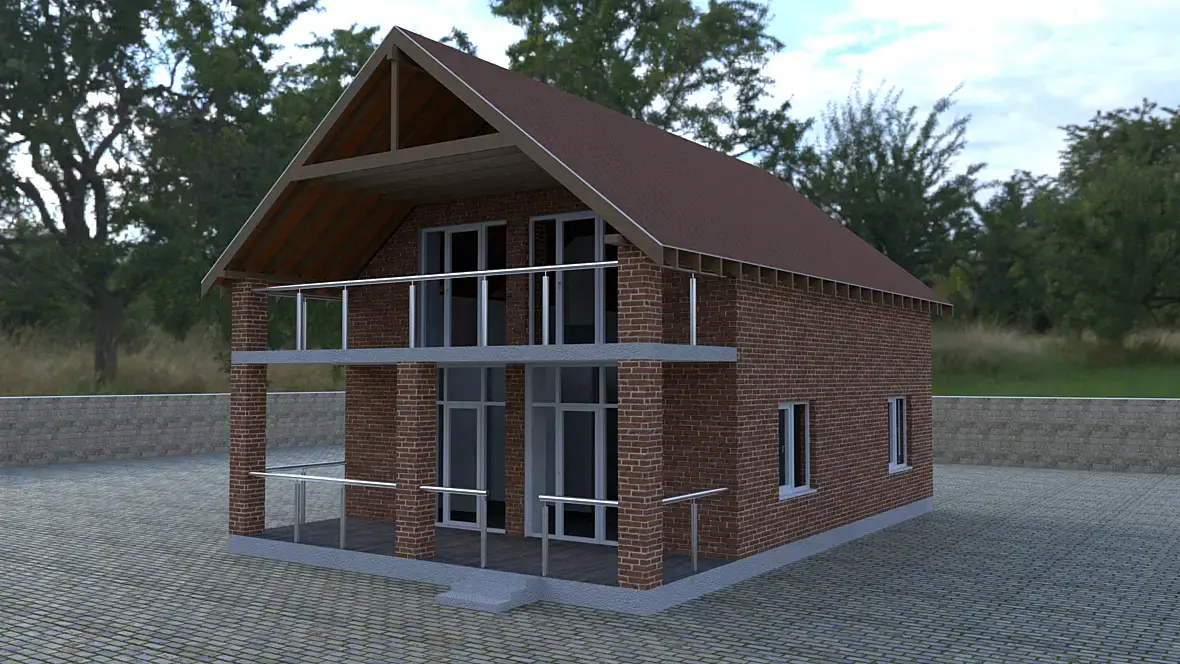 коль занимаешься проектированием, то уж всё сделай. Водостоки всякие, коньки, трубы там. А то не дом, а амбар какойто. Ну и окружение. поставь ламборгини не дорогую, всякий хлам там накидай . А то плиткой замостырить любой мэр может.