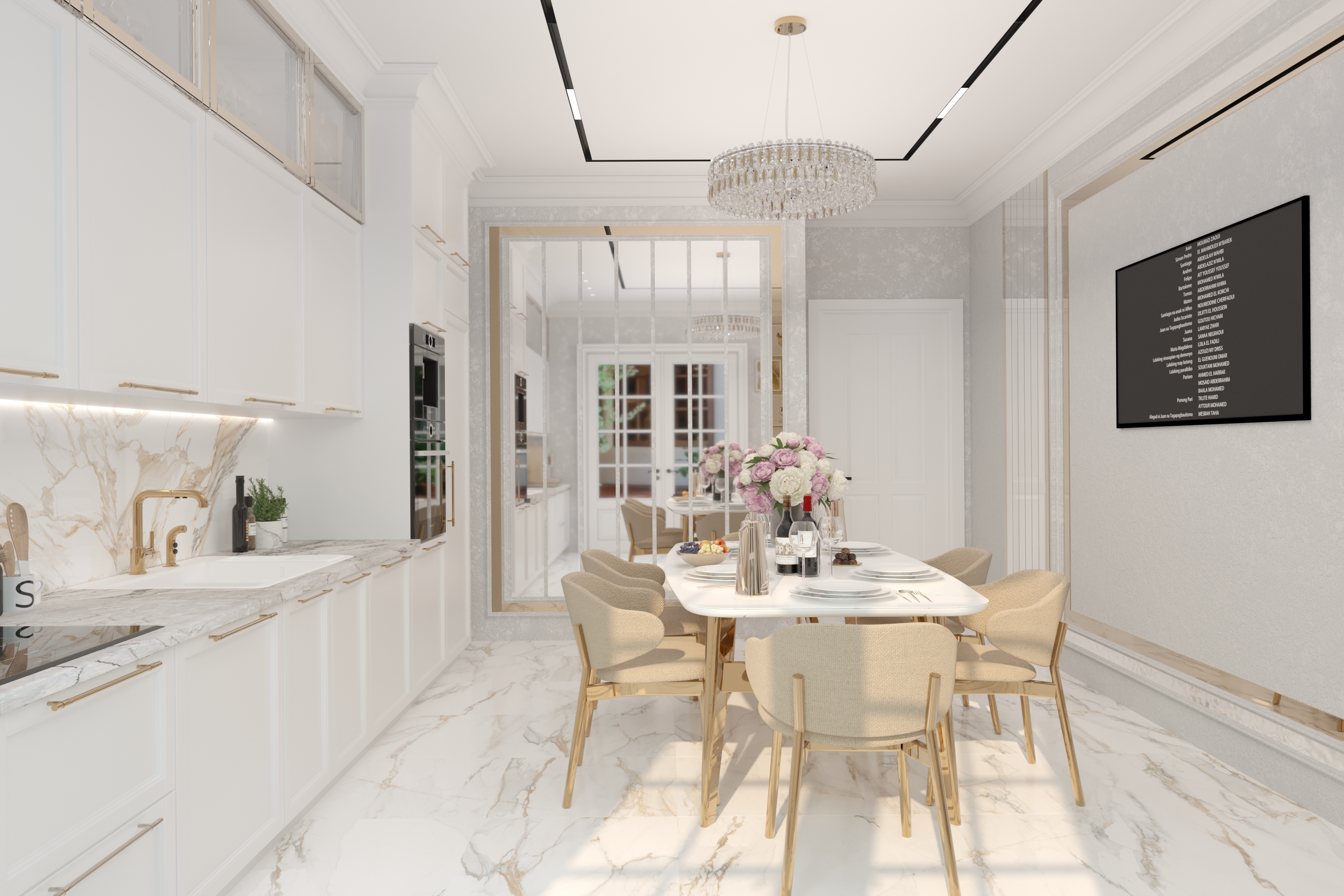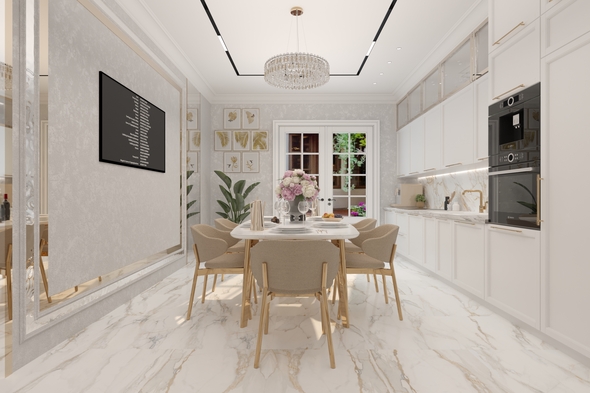 Столько акцента на светлых тонах и черная техника... Да и телевизор в кухне-столовой мещанство какое то, по современным меркам. Думаю в доме с такой кухней достаточно мест где его можно более комфортно посмотреть.