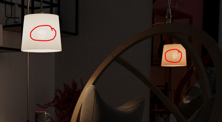 В одном из ракурсов сквозь абажур видна светящаяся сфера :( И в отражении зеркала она же: