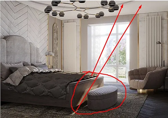 немного непонятно, из какого места солнце так светит на спинку кровати. если реверс-инжинирить по углу падения, светить должно через перекрытие и глухую стену.