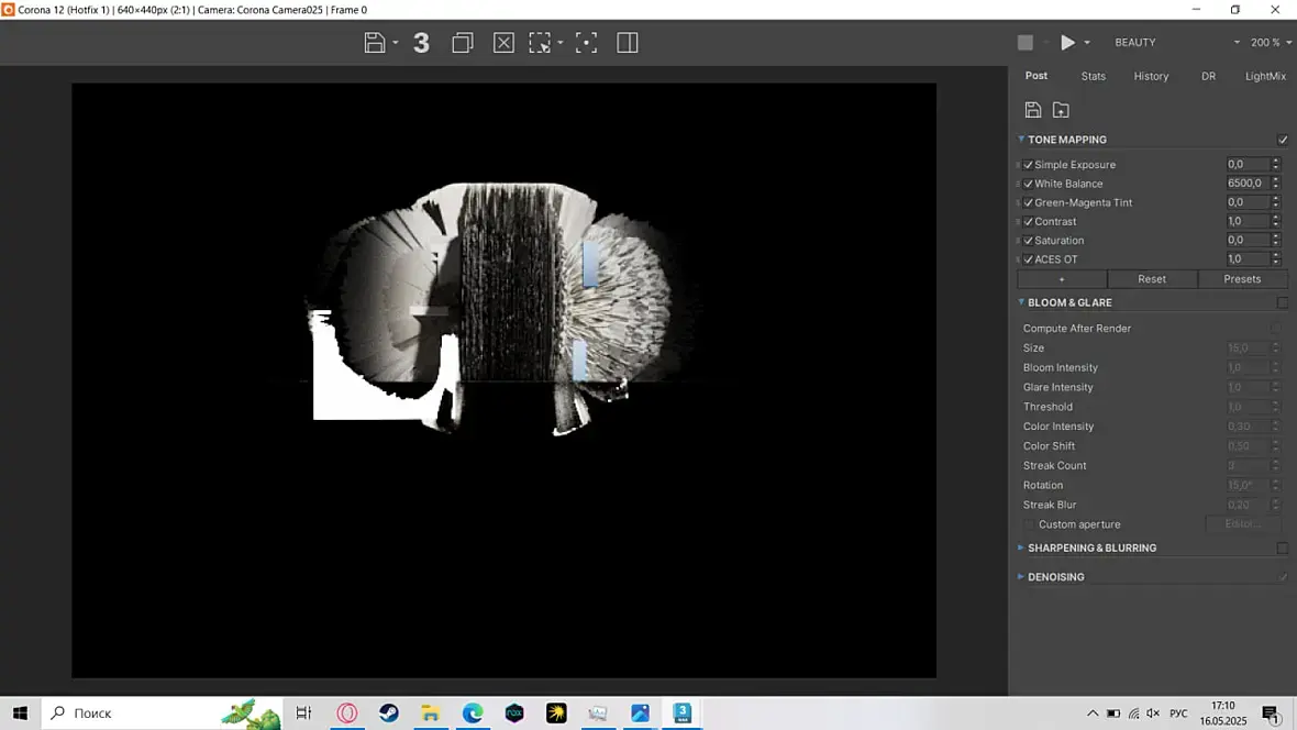 интересно, что при этом на рендере у вас пропал ковер который есть в сцене. У меня есть предположение, что это баг с отображением ковра и дисплейса на нем, попробуйте его спрятать или удалить на время и проверить, не в этом ли дело