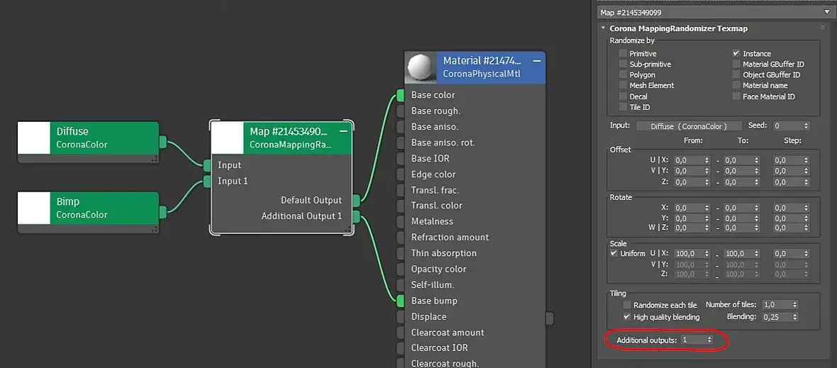 Всем привет. Если я закидываю карты в diffuse и bump штукатурки в corona mapping randomizer с одинаковыми параметрами, они будут совпадать, с учетом что разные картинки? или он для каждой картинки по отдельности рандом создает? спасибо! и аналогичный вопрос по corona triplanar