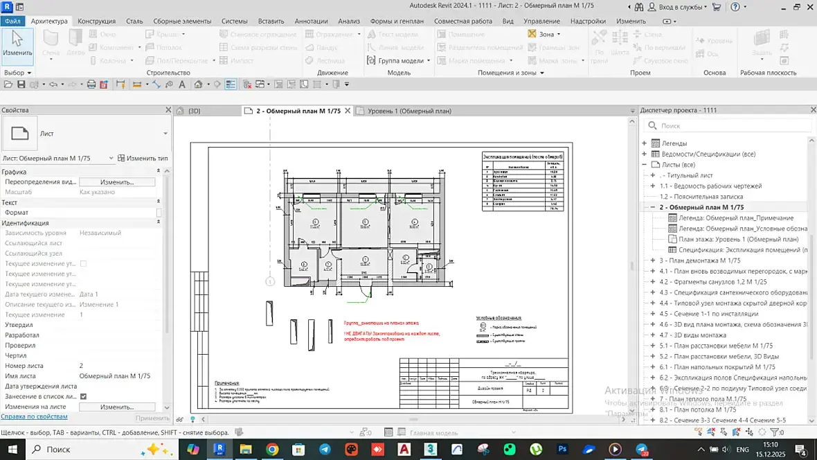 Здравствуйте, вопрос по Revit: не могу активировать вид с планировкой из листа, он на него не нажимается.