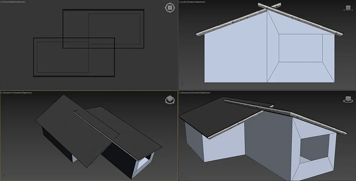 Наверняка в мире кто-то уже такое делал, но я даже не соображу, какой запрос сделать, чтобы найти, поэтому сюда спрошу - как красиво соединить дв крыши, чтобы не оставалось перекрестья?