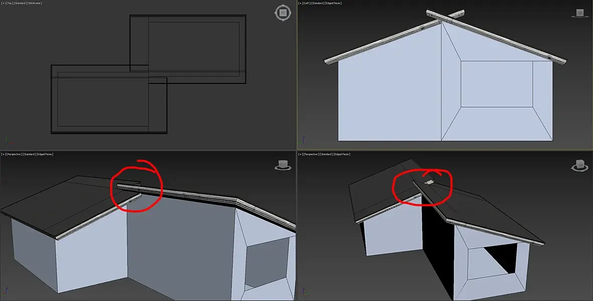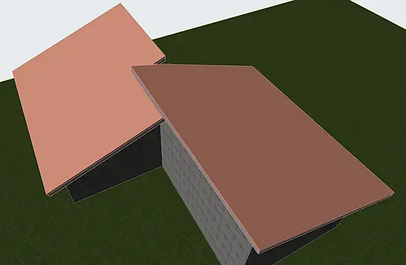 Наверняка в мире кто-то уже такое делал, но я даже не соображу, какой запрос сделать, чтобы найти, поэтому сюда спрошу - как красиво соединить дв крыши, чтобы не оставалось перекрестья?