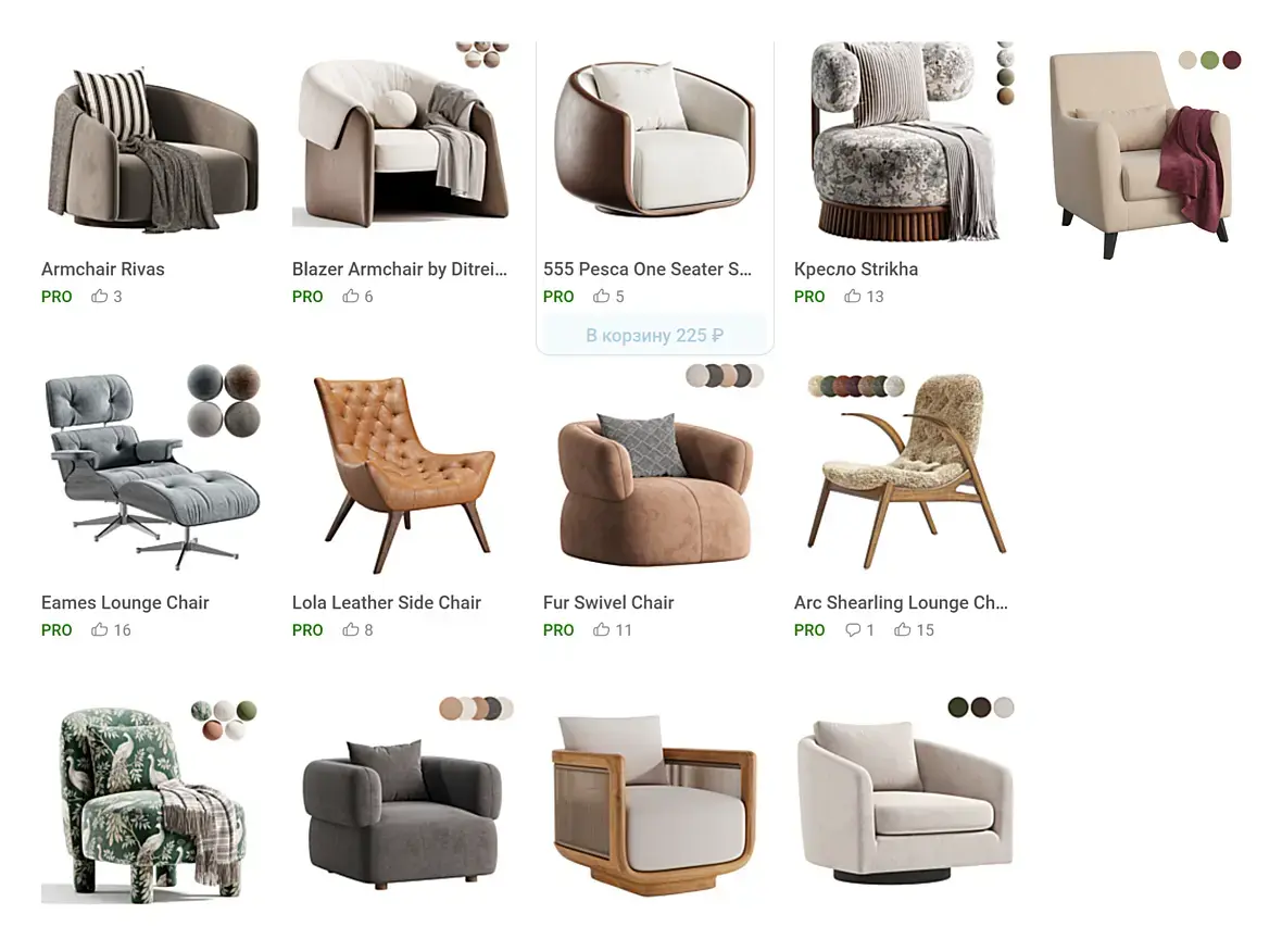 Svetlana_ddd, на фоне остальных моделек на сайте не понятны придирки, есть даже похожее кресло, но с лишней геометрией. а вообще один колор корект лишний в первом шейдере, а по хорошему фолоф вообще не нужен есть ведь sheen