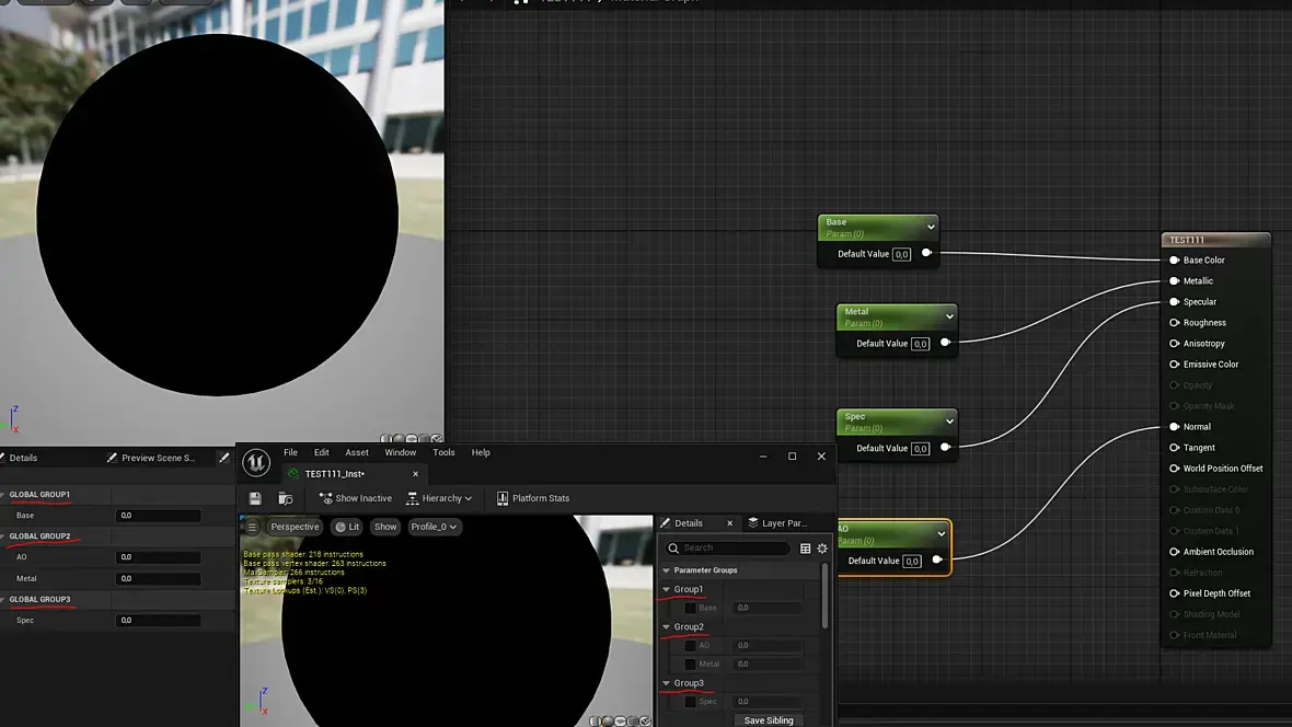 Большое всем спасибо за ответы! Столкнулся с удивительной проблемой. Создал Мастер-материал. Из него создал instance материал. А он опции в настройках материала не как обычно сгруппировал по разделам PBR. А раскидал отдельно в Vector parametr, Scalar parametr, Textur parametr. В том же документе из другого мастер-материала instance делается нормально. А из этого разбивает. Этот мастер-материал ни чем от других не отличается, кроме того что выходит много настроек. Но ни чего не глючит. Почему программа в других материалах разбивает по разделам, а в этом по параметрам? Чертовщина какая то.
