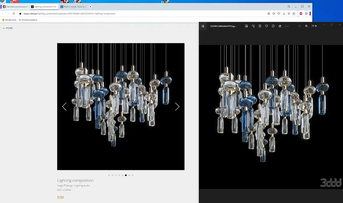 Мне как то всё равно как у него ник и как называется сайт. Мне важно, что бы модель соответствовала приложенной картинки. А у него этого у этой модели нет. Там люстра с прозрачным стеклом и подобием пузырьков.