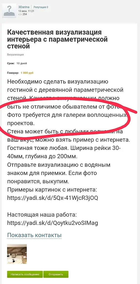 Он не мошенник, просто думает что сделают хорошее рекламное фото, он же в курсе што в 99 процентах рендер это шлак. Поверил в заумные слова. Со временем поймет что лучше реального фото пусть и не вылизанного рекламы нет. Я если вижу на сайте только рендеры жму крестик сразу и никогда не связываюсь с такими товарисчами.