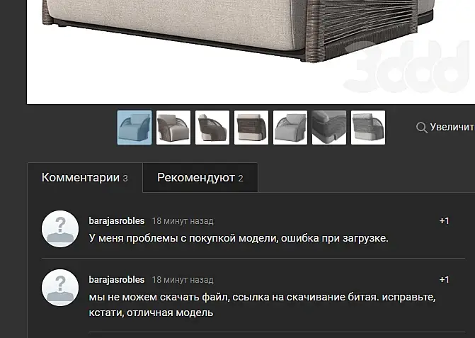 Здравствуйте, пользователь под моей моделью пишет, что не может скачать модель и купить ее (я не совсем понимаю, в чем проблема). Если это проблема на стороне сайта, то можете мне сказать, купил он ее или нет. Если купил, я ее ему отправлю на почту через ЛС.