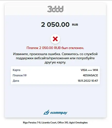 Добрый день! не проходит оплата за модели, перепробовала все указанные на странице способы, каждый раз выдает ошибку. пробовала несколько карт от разных банков (РНКБ и Тинькофф)
