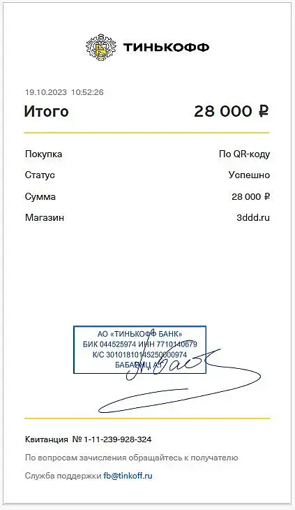 19.10.2023 была оплачена покупка Про моделей на сумму 28000 руб через СБП.