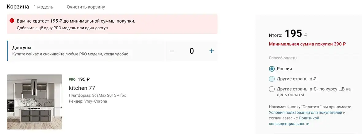 Здравствуйте. Не прошло две оплаты. 1 - покупка модели и один доступ к ПРО. 2 - покупка двух доступов к ПРО. Банк (Тинькофф) деньги списал, на аккаунте пусто.
