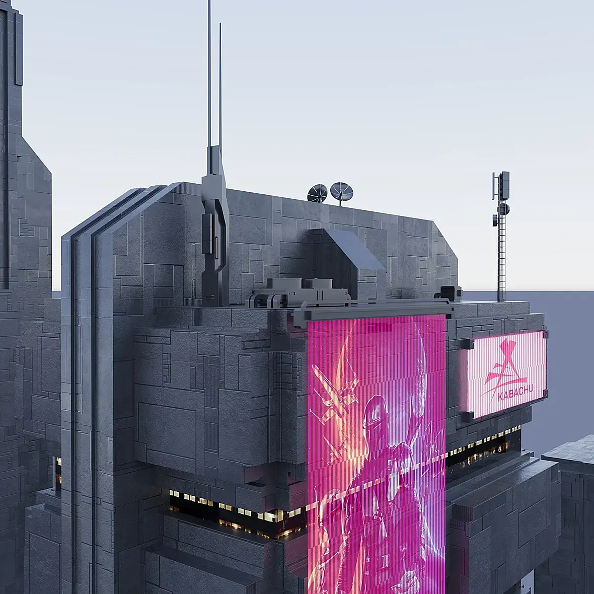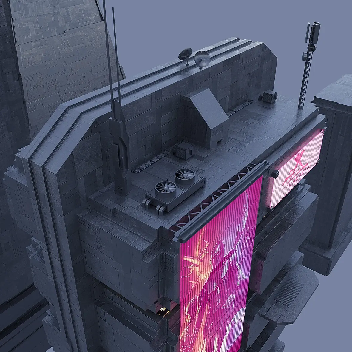 Киберпанк город делаю. Основная проблема - общая стилизация, стандартизация. Нужно сделать штук 20-30 зданий разных. Детали для крыш, рекламы и т.д. Для картинок рекламных щитов буду ИИ юзать.