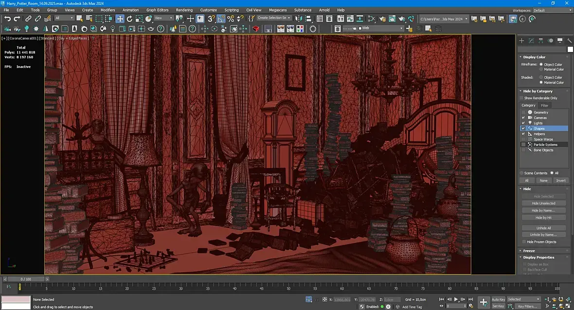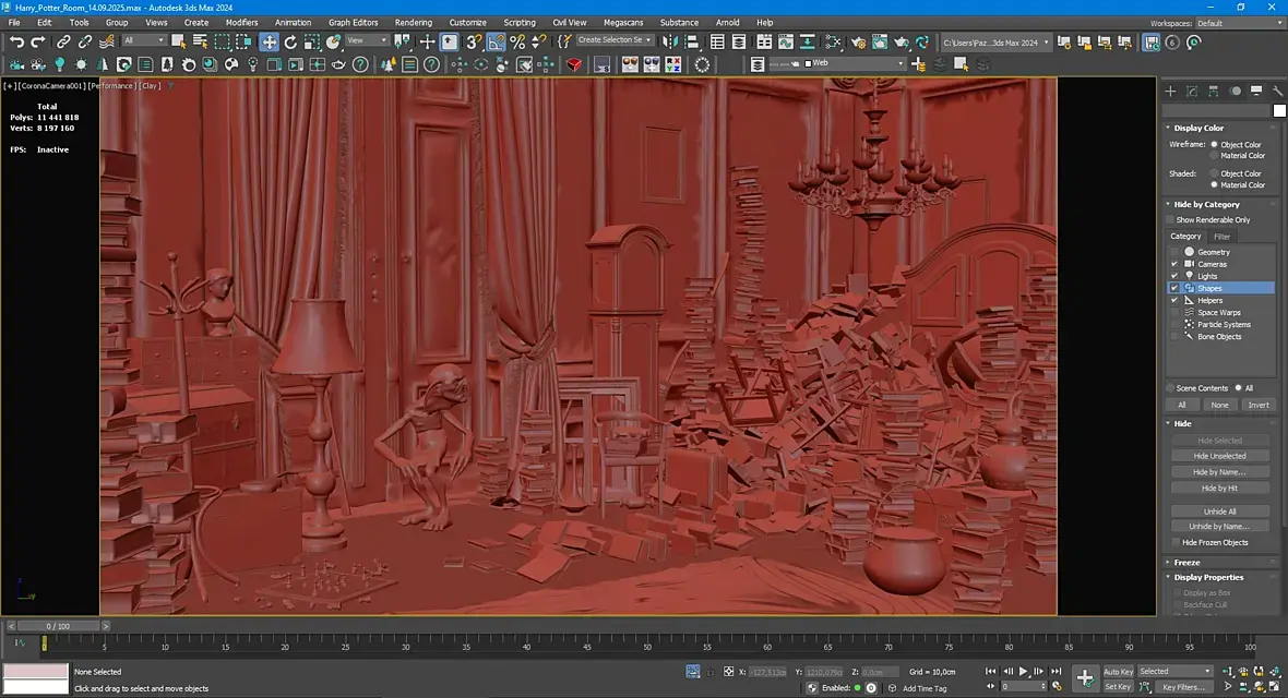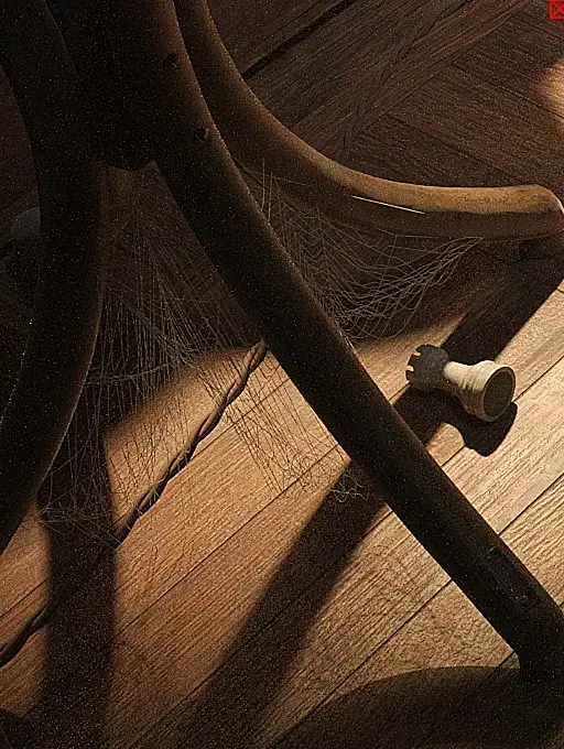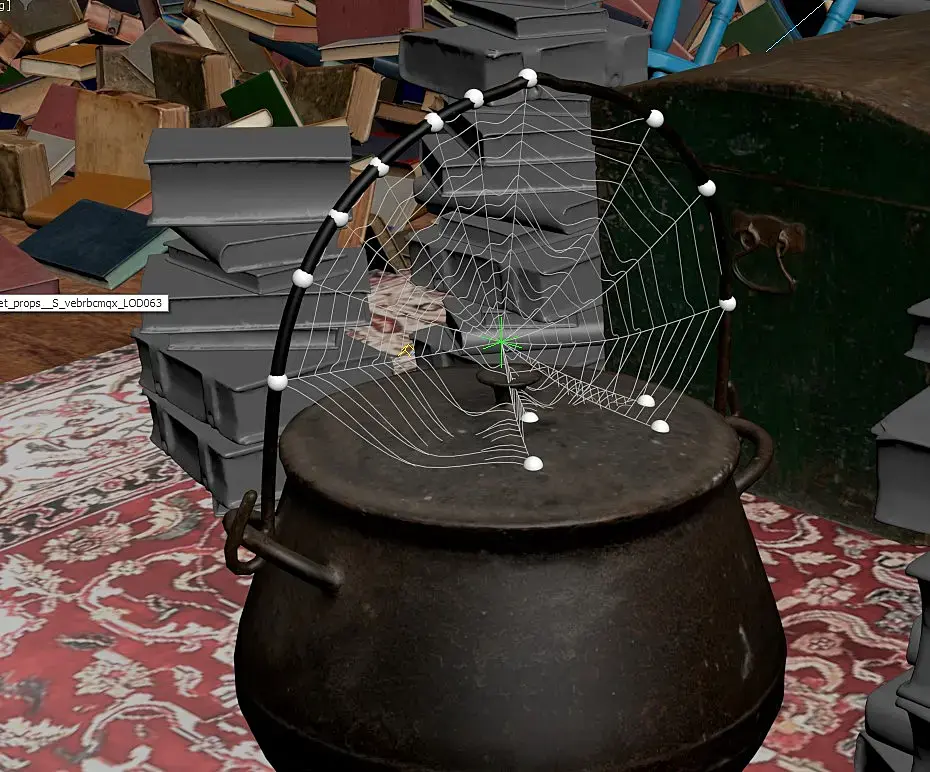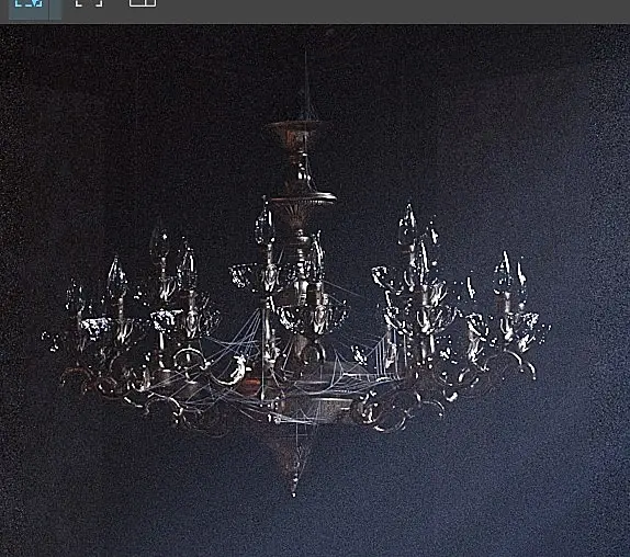 запылил пол. паутина с этого ракурса вообще сказка. дальше все остальное нужно запылить, только совсем чуть чуть. ну и паутинки на другие ключевые места