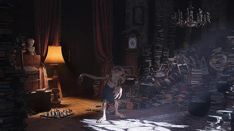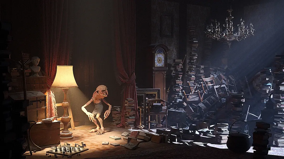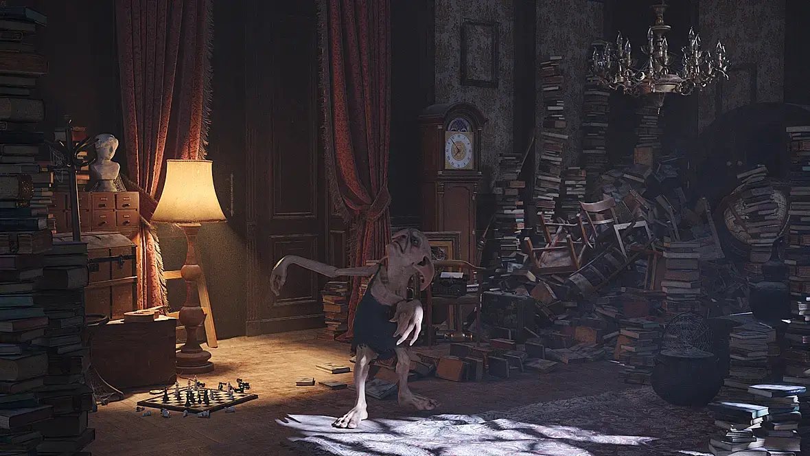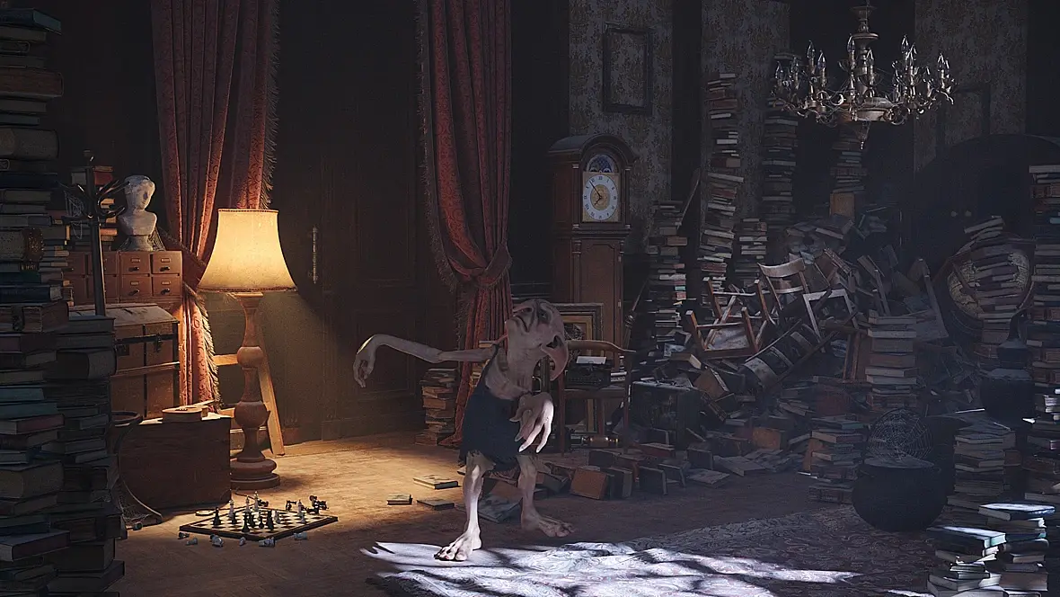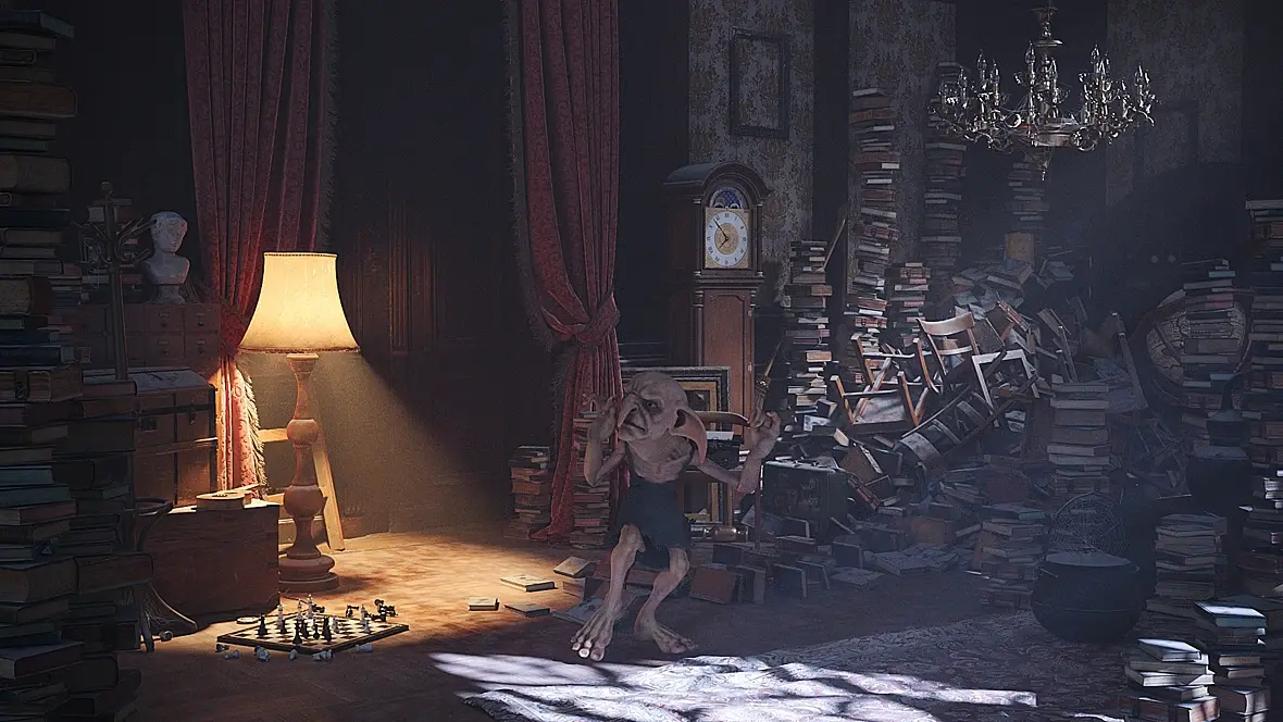 Спорят источники освещения между собой, не хватает глубины в тенях для контраста, эффект объемного света от торшера не нужен, там мягкий свет необходим, в противовес прямым лучам из окна.