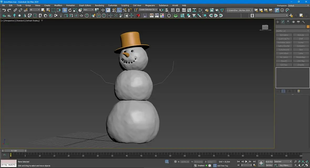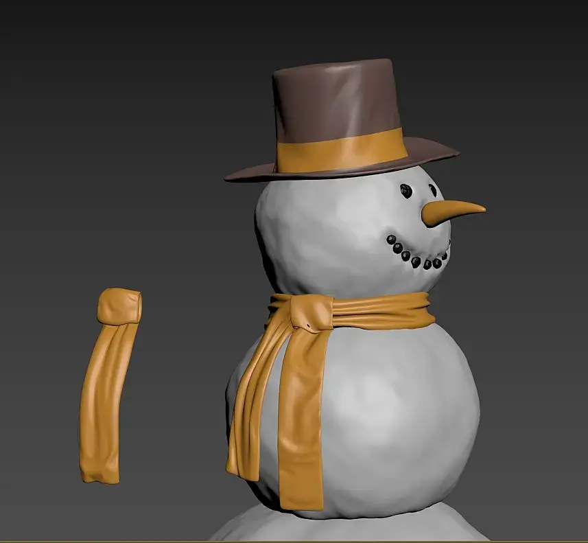 Я бы сделал 3 материала - снеговик, шапка и шарф. Чтобы шарф и шапку мог любой перекрасить, а если кому-то из опытных понадобится более глубокое редактирование, он с морковкой, пуговками и т.д. разберется