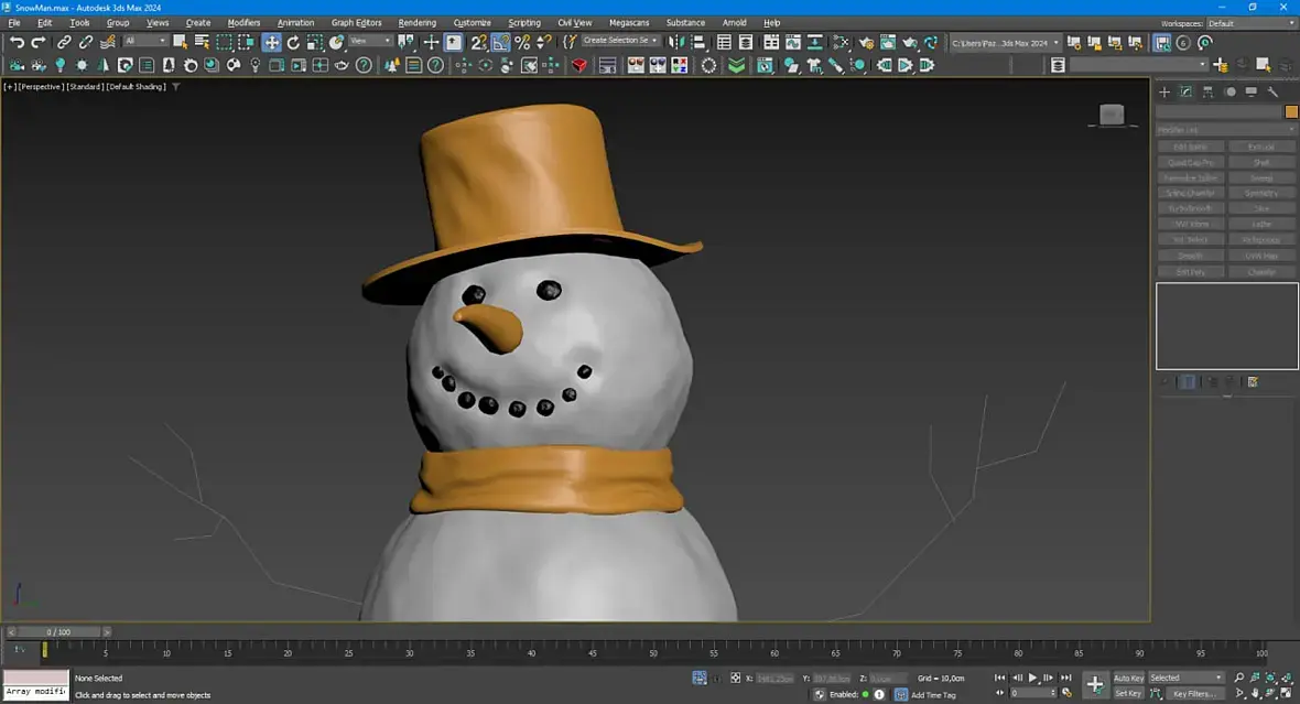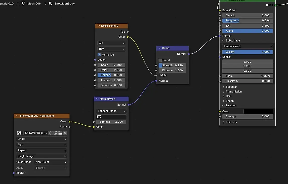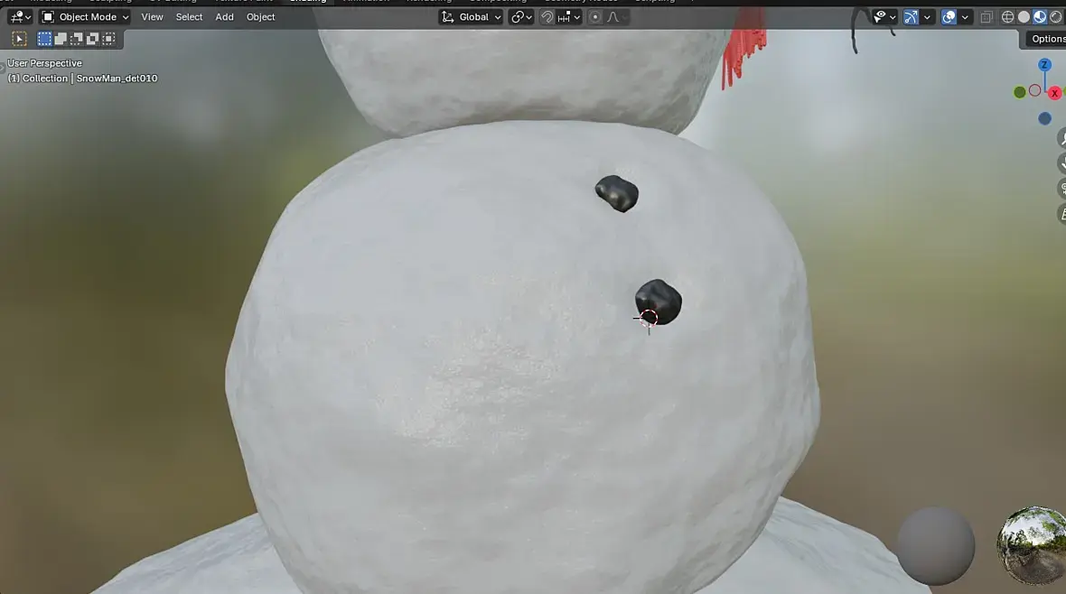 вроде всё хорошо и реалистично, рендернуть на какой нибудь хдрке и будет фоторил, но... Приятнее снеговик выглядит, когда он слеплен из пушистого снега. Смотрел фотки в интернете - приятнее они выгядят. так же и снег на ветках, пушистый лучше смотрится. Если есть желание и время - попробуйте реализововать. Даже не понятно чем в итоге - дисплейсом врядли - рваное всё будет, частицами - дорого, сложнее. Но вдруг найдете компромисс