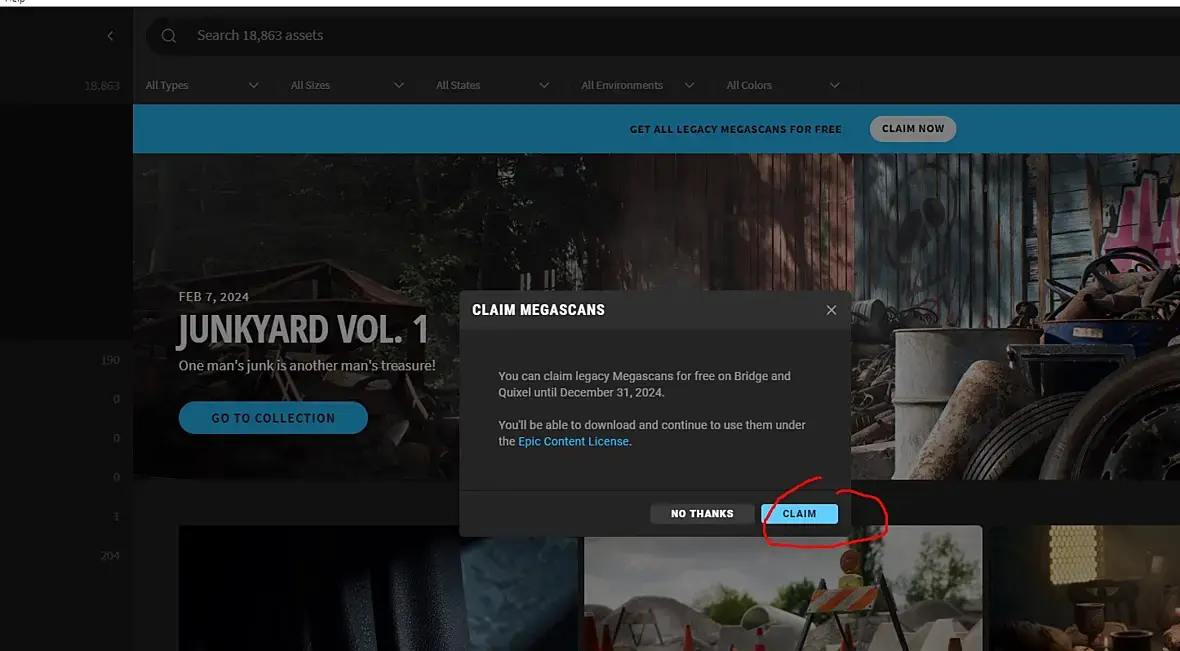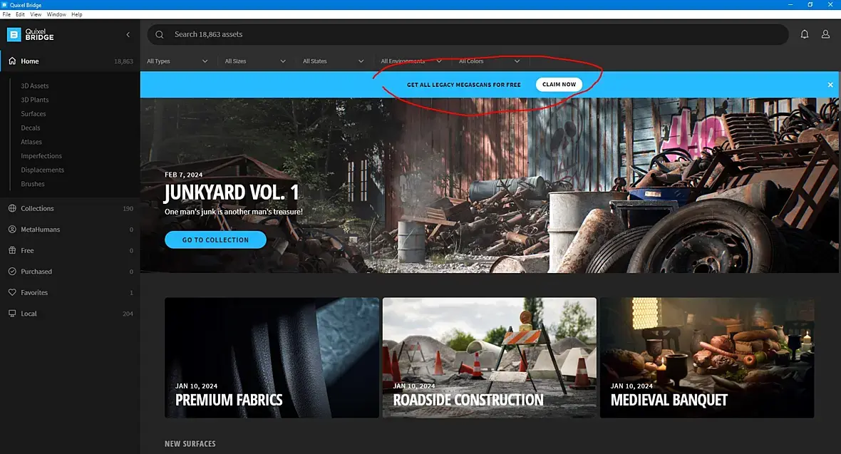 You can claim legacy Megascans for free on Bridge and Quixel until December 31, 2024.You'll be able to download and continue to use them under the Epic Content License.