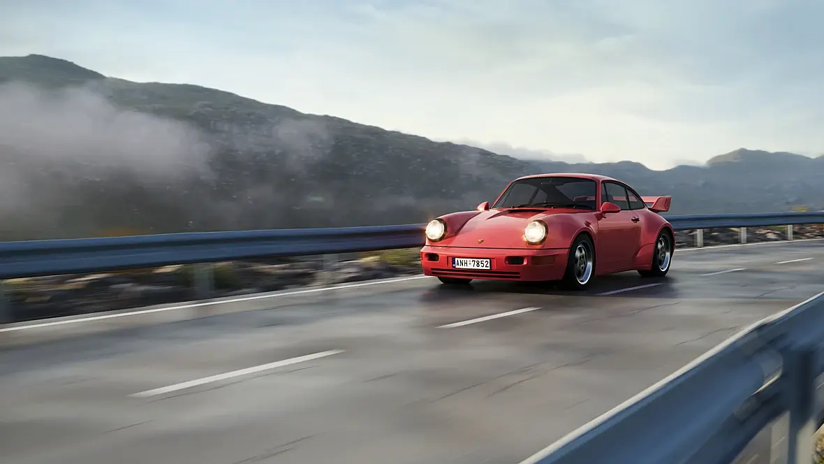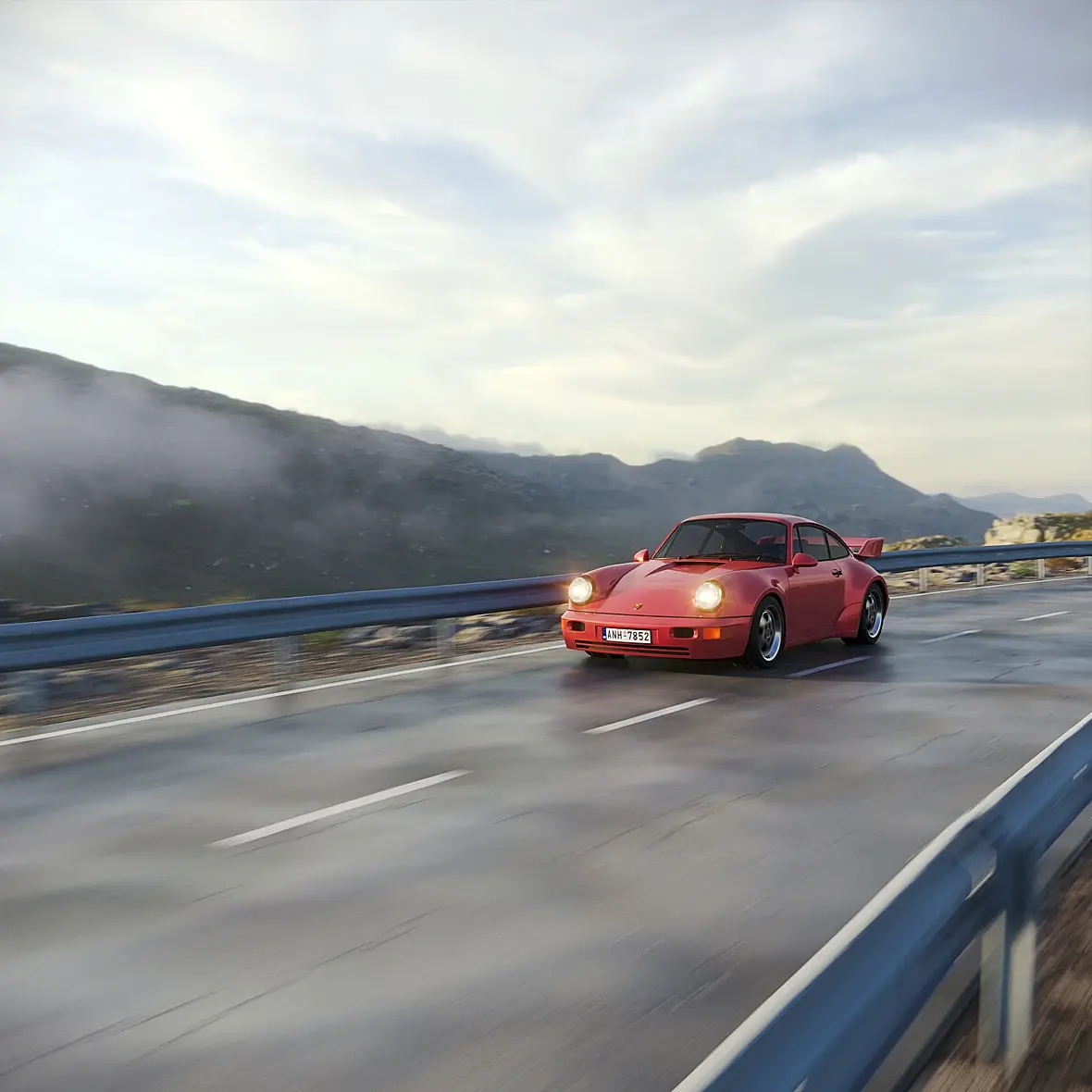 Размытие сделал так, что и камера движется и машина. Из-за этого горы слегка размылись.