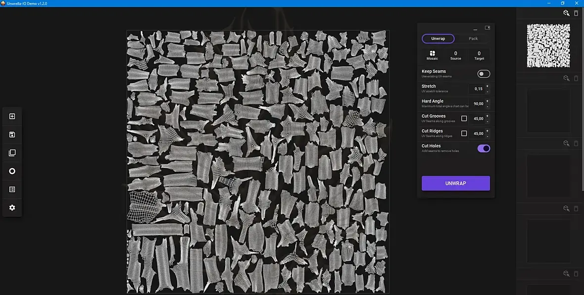 Процедурный, не запечённый, здесь вообще нет развертки. Он в ней не нуждается, Но он запечется на любую развертку, так что швов видно не будет, Хотя конечно согласен, лучше швы сделать в незаметных местах.