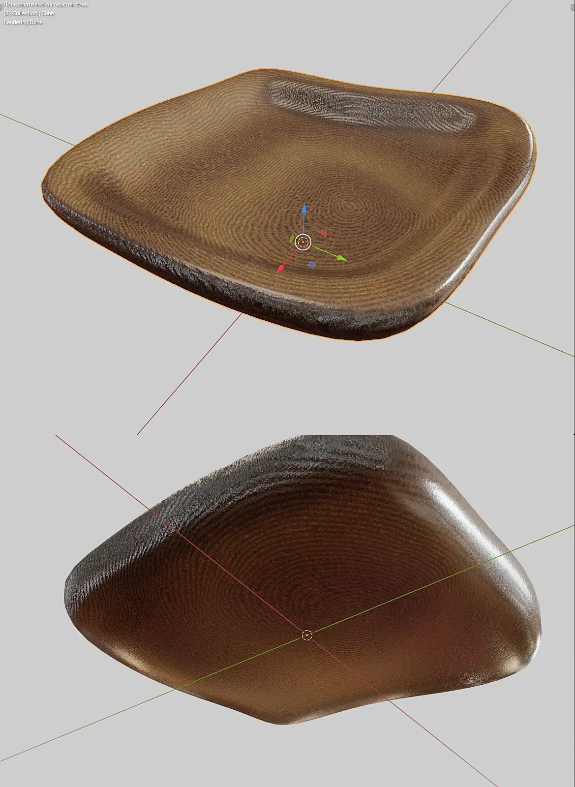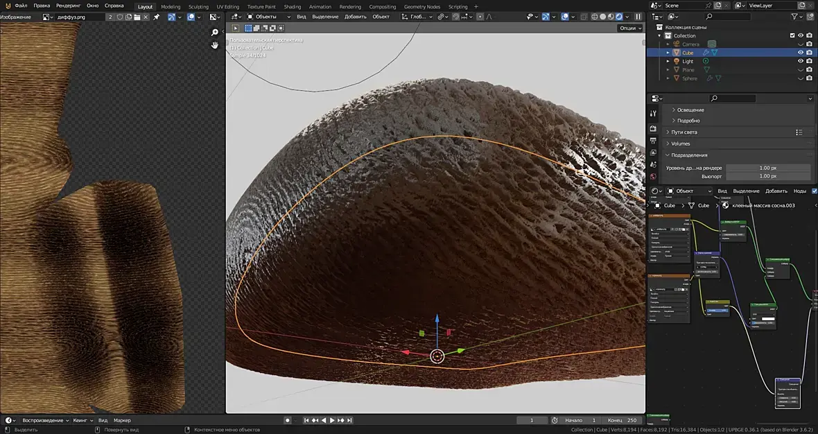 Честно говоря, без понятия как там должен быть срез дерева и как разворачивать правильно. Моя задача, что не было швов видно. Поэтому резал в нижней части. В пеинтере покрасил по развертке, чтоб не было видно швов уже кисточкой смешал 2 одинаковых слоя по маске
