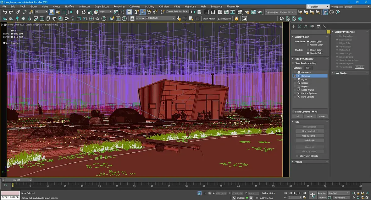 вот скрин из вьюпорта. Предыдущая картинка был рендер. Много классного конечно после макса, интерактивность и прочее. Но и минусов хватает. Вот они сделали функцию в новой версии Скаттер по сплайну и внутри сплайна. И эти оранжевые линии не знаю как отключить. реально портит визуал.
