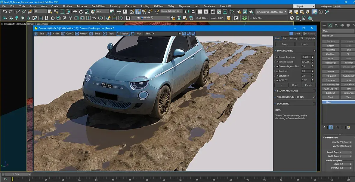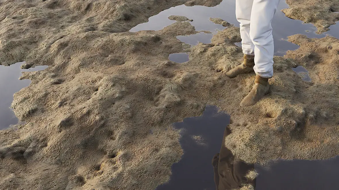 Грязь неплохо получается, а вот цвет воды, на мой взгляд, слишком контрастный. Похоже на разлитую нефть. Я бы сделал его ближе к цвету грязи, ведь в этой воде должна растворенная грязь плавать