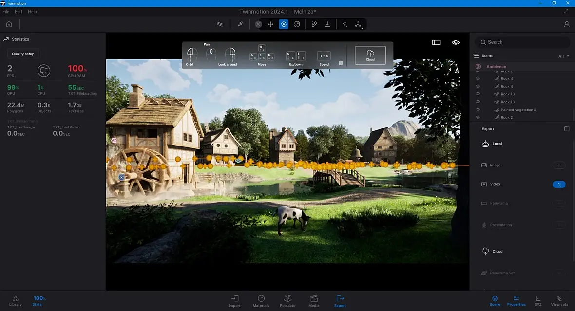 Короче здания грузят сцену. Хрень, вот вам и не оптимизированные модели. Это не 3д макс не накидаешь кучу мусора. Буду пробовать оптимизировать, работать в слоях.