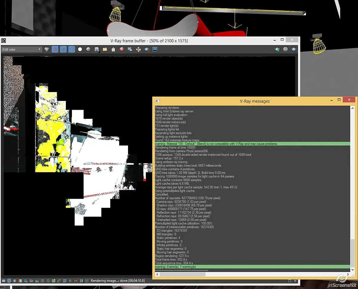 Не ужели это из-за одного предупреждения, одного некачественного материала так портится картинка??? Бывает куча предупреждений - а рендерится - норм!