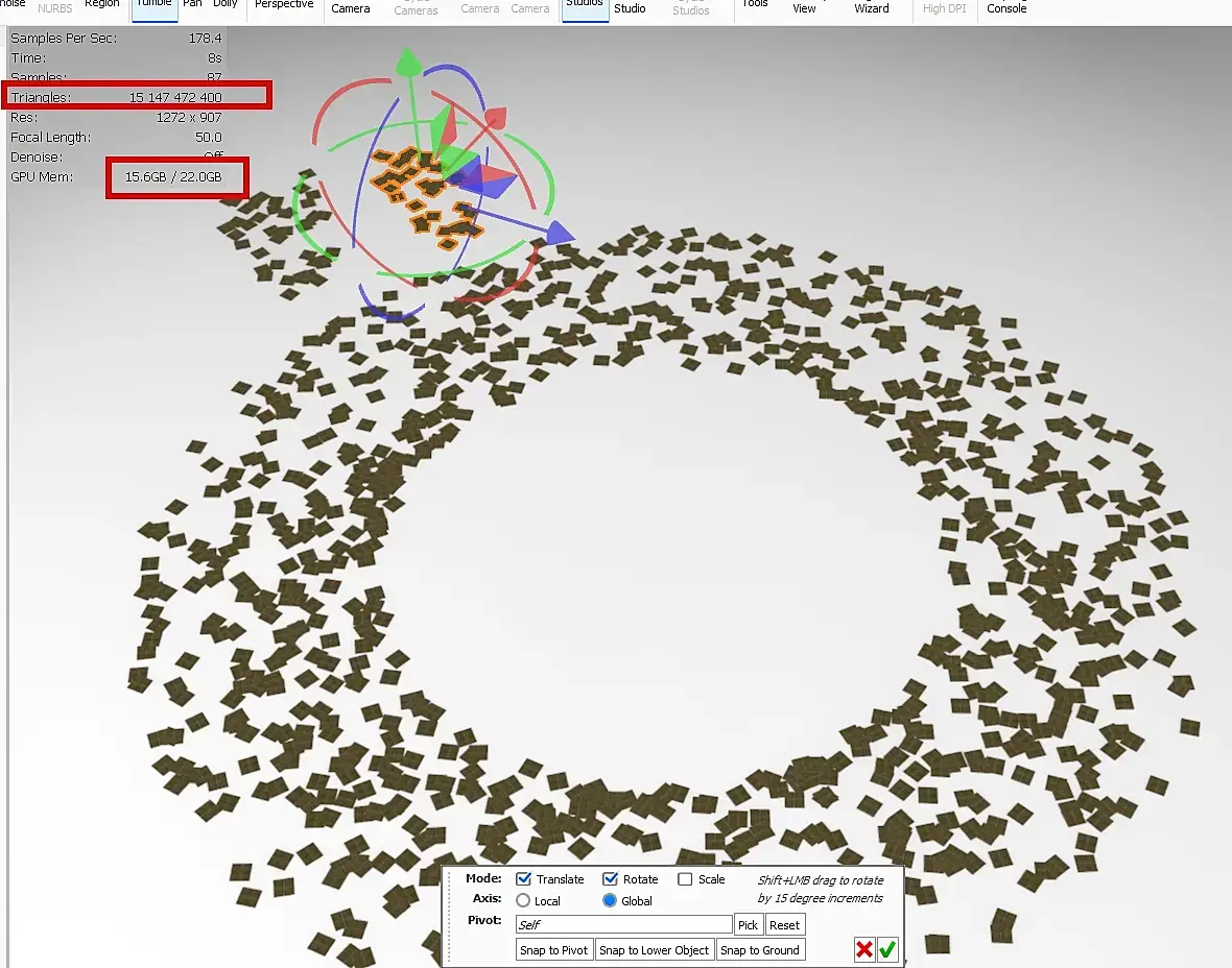 Смысл теста - проверить дубликаты именно в режиме Copy и забить все 11ГБ памяти одной видео-карты, чтобы активировать работу NVLink mode. Раньше, например в V-Ray 4 - у меня просто вылетал 3ds Max на таком количестве полигонов. Сейчас, V-Ray рендерит это количество и NVLink работает правильным образом. А с 900 млн проблема уже в самом 3ds Max.