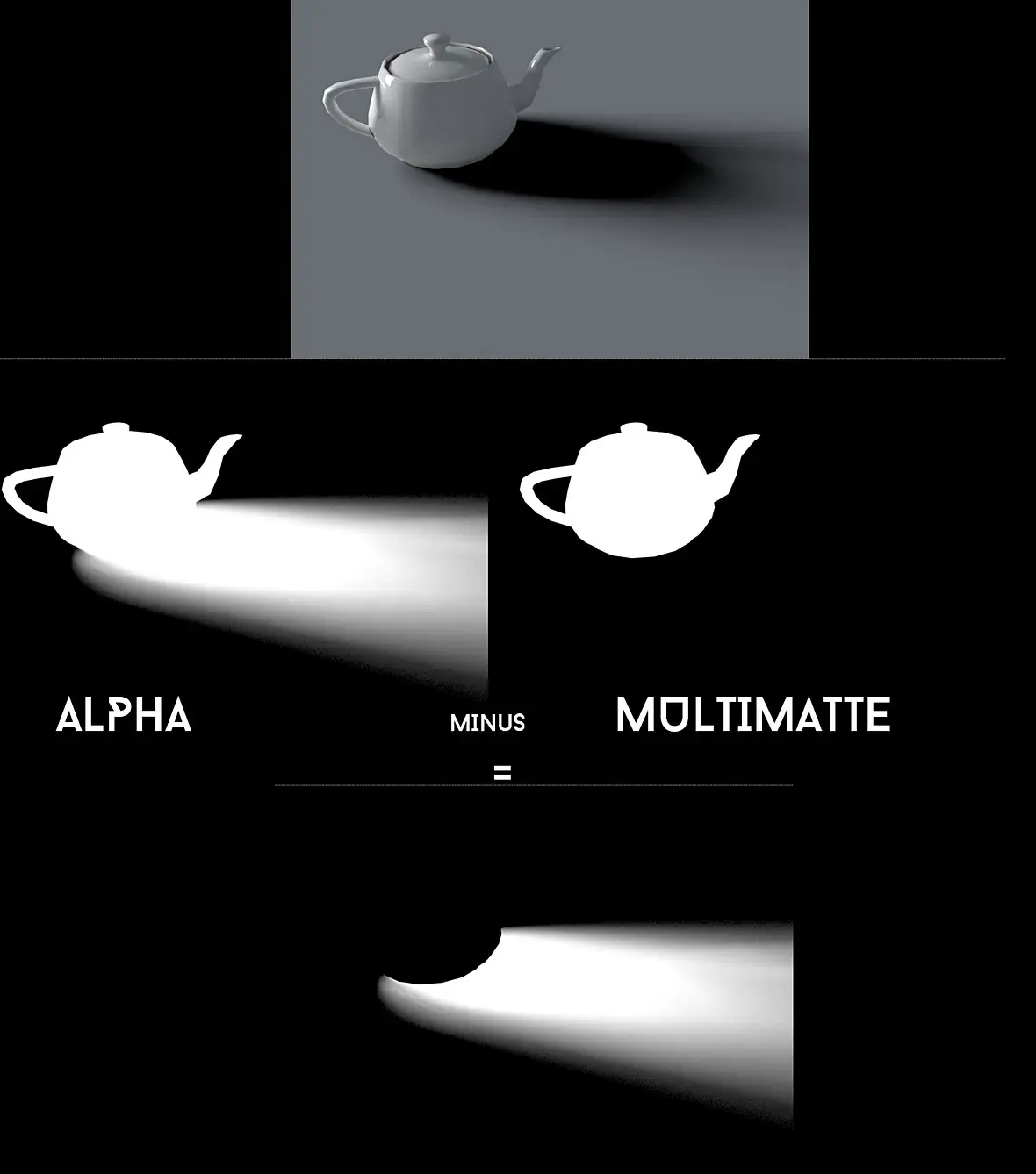 YEP. Vray GPU все еще неполноценный продакшн рендерер. Можно извернутся и сделать маску на объекты (Multimatte или Cryptomatte) и вычесть её из общей альфы, оставив тем самым только тени и GI.