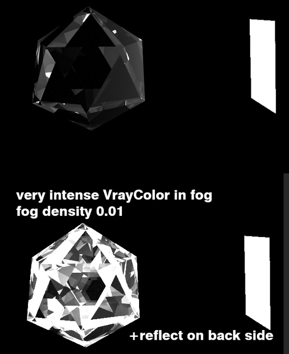 ViTcore - Спасибо! Отличный пример того что надо, но опять не до конца понял что делать. Я знаю где галочка reflect on back side (если я правильно понял то это на рефлекшене). но что значит интенсивный VrayColor in fog density 0.01... Че то я таких параметров не видел. Если можно как то поподробнее об этом напишите.